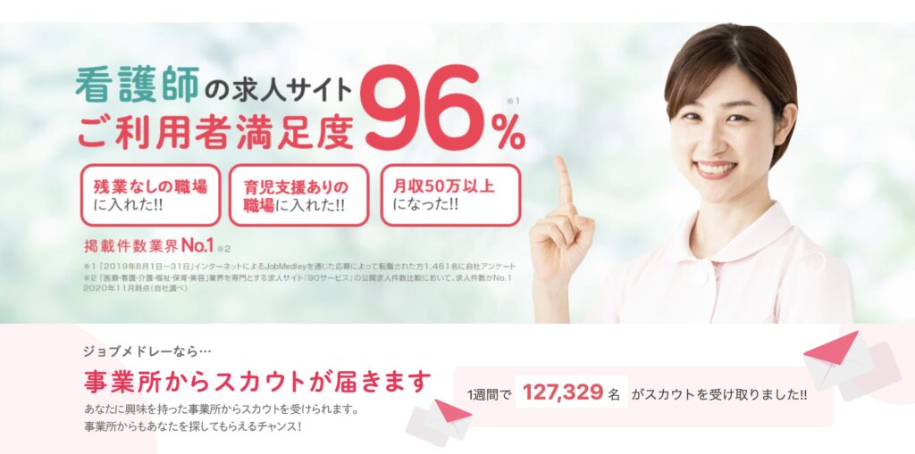 さっそくジョブメドレー看護師の評判について見ていきましょう。