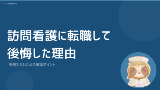 訪問看護に転職したいけど、後悔しないか不安…「訪問看護に転職して後悔した」という声を聞いたことがある方もいると思います。この記事では訪問看護への転職で後悔する理由と後悔しないための転職のコツを実体験をもって正直にお伝えします。この記事を書い...