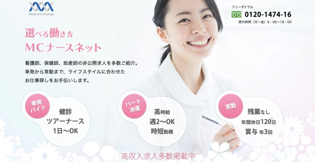 MCナースネットは、派遣・単発求人に強い、看護師向け転職支援サービスです。